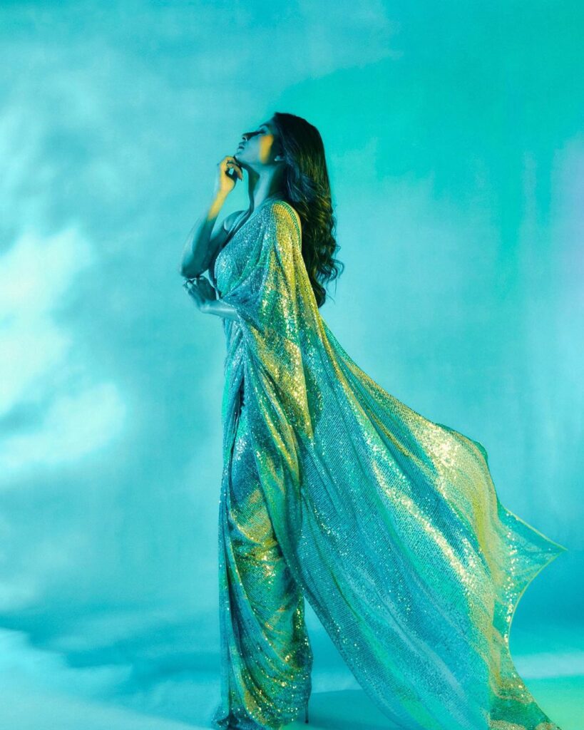 टीवी एक्ट्रेस मौनी रॉय ने अपने फैंन्स के साथ ऐसी तस्वीर शेयर की हैं जिसे देख किसी का भी मन डोल जाए। जिसमे उनकी खूबसूरती देखते ही बन रही हैं। एक्ट्रेस मौनी रॉय ने शिमर साड़ी में एकदम ग्लैमरस फोटोशूट करवाया है। इस दौरान इस फोटोशूट मौनी रॉय कुर्सी पर बैठकर बेहद ही स्टाइलिश अंदाज में पोज देती दिखाई दे रही है। वही एक्ट्रेस मौनी रॉय दूसरे फोटो में खड़े होकर साइड पोज देती दिखाई दे रही हैं।
